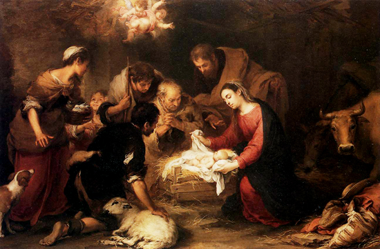 아래 그림은 양자리시대를 끝내고 다음 물고기자리의 새로운 시대를 열기 위해 유목민의 신인 여호와의 아들 신분으로 이 땅에 온 것을 알리기 위해 유목민인 목동들이 와서 아기 예수께 경배한다. 역시 별자리와 매우 깊은 관련이 있는 내용이다.